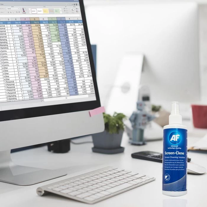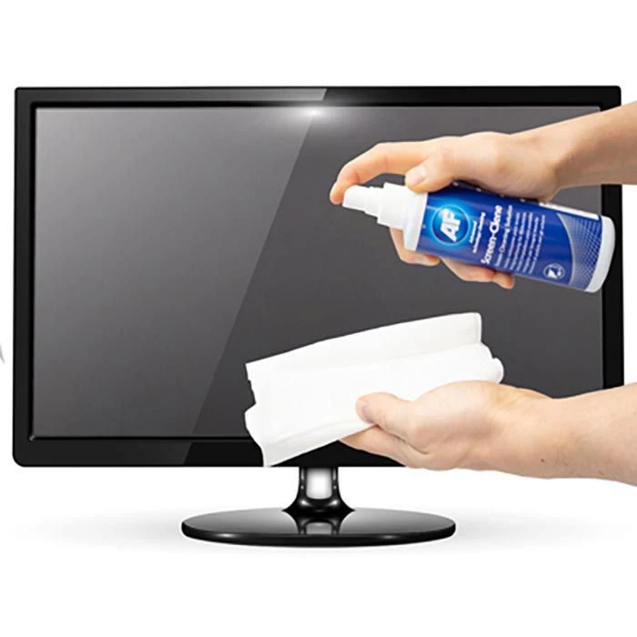 Hinweis: Bildschirmreiniger vorsichtig verwenden. Vor Gebrauch stets Etikett und Produktinformationen lesen.