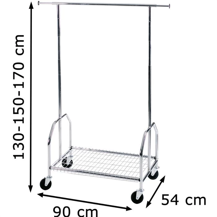 sonstiges: aus verchromtem Metall, große Lenkrollen aus Vollgummi (Ø 100 mm), Kleiderstange beiderseits ausziehbar
