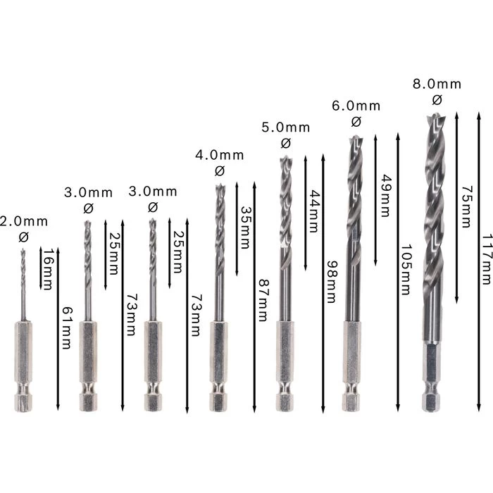 Bohr-Ø: 2 mm, 3 mm, 4 mm, 5 mm, 6 mm, 8 mm