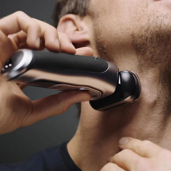 • Flexibler 10-D Scherkopf passt sich optimal den Gesichtskonturen an