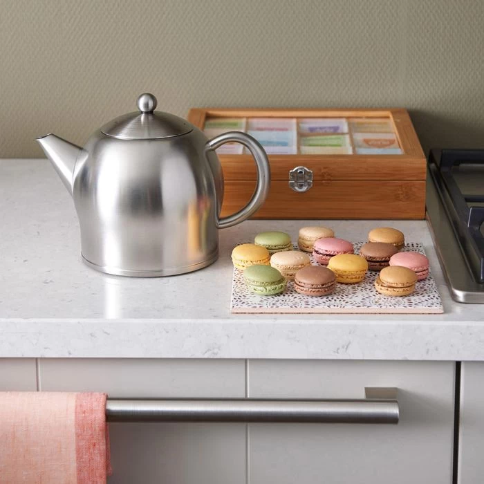 • Doppelwandige Teekanne aus hochwertigem Edelstahl