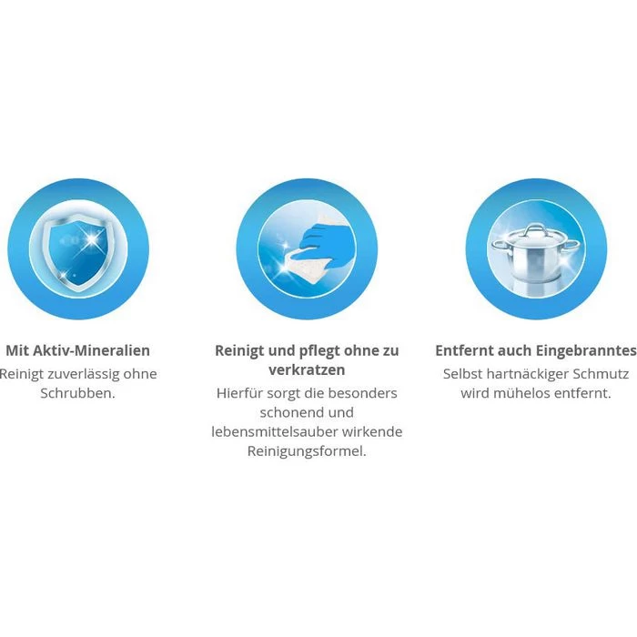 Hinweis: Glaskeramikreiniger vorsichtig verwenden. Vor Gebrauch stets Etikett und Produktinformationen lesen.