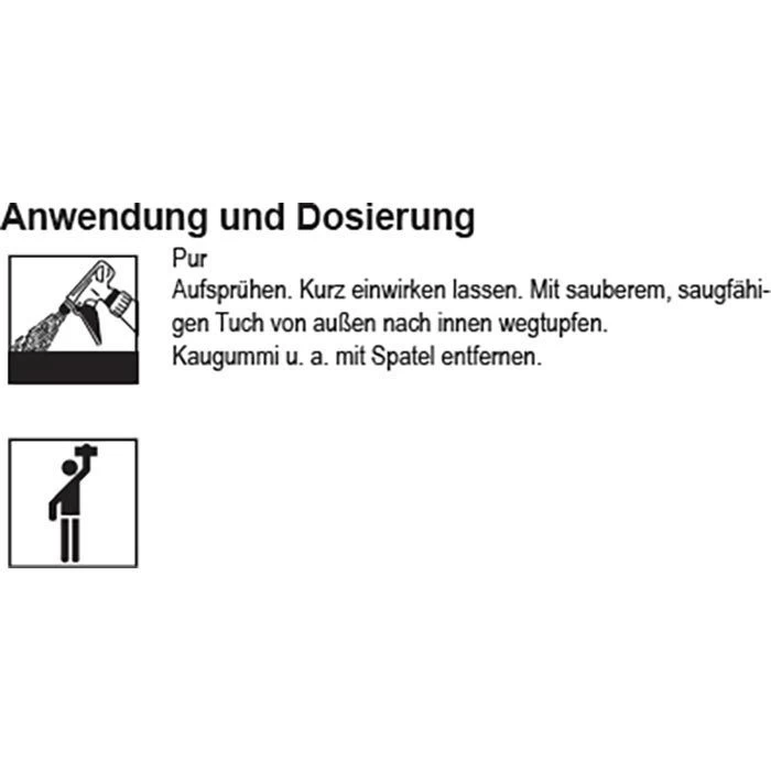 geeignet für: die Detachur (chemische Fleckenbeseitigung aus Geweben) auf lösemittelbeständigen, farbechten Oberflächen, Teppichen und Polstermöbeln