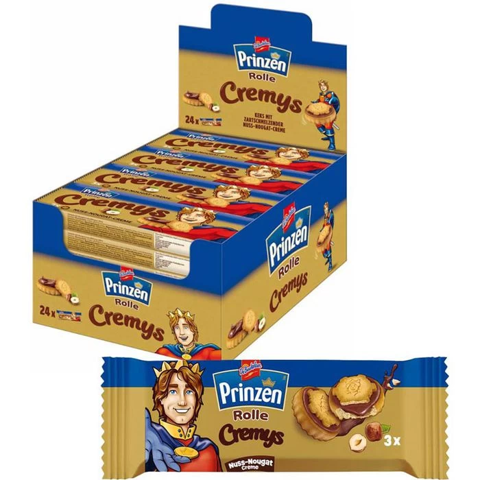 WEIZENMEHL, Zucker, pflanzliche Fette (Sonnenblume, Palm, Palmkern, Kokos in veränderlichen Gewichtsanteilen), HASELNUSSMARK (5%), MAGERMILCHPULVER, SÜßMOLKENPULVER, fettarmes Kakaopulver, VOLLMILCHPULVER, Glukosesirup, Emulgator (Lecithine), Salz, GERSTENMALZEXTRAKT, Aroma, Backtriebmittel (Natriumhydrogencarbonat, Ammoniumhydrogencarbonat)