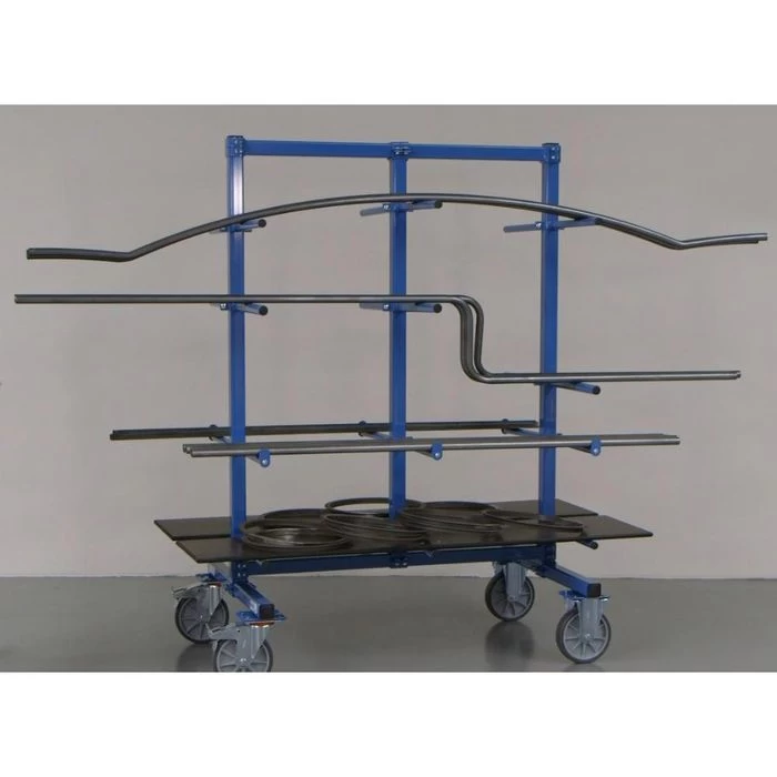 Material: Rahmen aus Quadratrohr, Tragarme aus Stahlrohr (Ø 27 mm) mit 3 mm starkem PVC-Schlauch überzogen