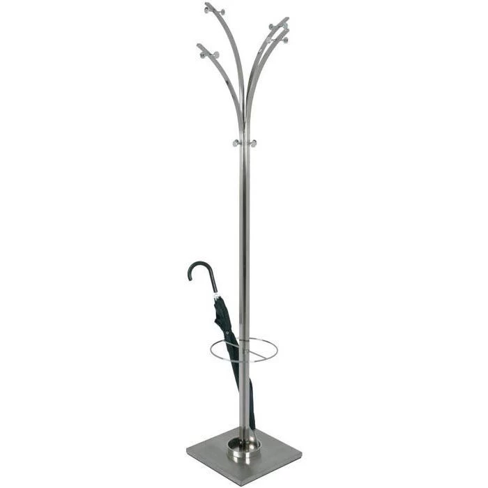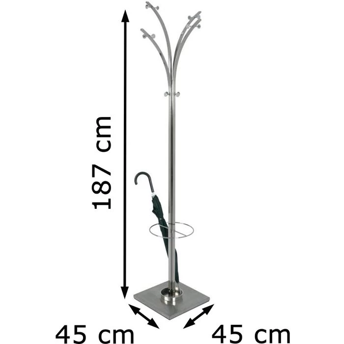 sonstiges: Edelstahloptik, 12 verchromte Kleiderhaken, mit Schirmständer und Tropfschale, standsicher durch schweren Standfuß