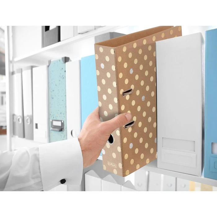 Optik (außen/innen): gepunktet (Pure Glam) / braun (Packpapier)