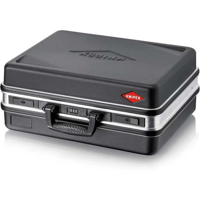 sonstiges: ABS-Kunststoff (umlaufender Aluminiumrahmen), mit D-Ringen zum Anbringen des beiliegenden Trageriemens, 2 herausnehmbare Werkzeugtafeln: im Deckel (beidseitig Verwendbar) mit 20 Werkzeugtaschen und auf der Bodenseite mit 12 Werkzeugtaschen, beide Werkzeugtafeln per Druckknopf fixierbar, Dokumentenfach im Deckel, Bodenschale: Höhe 55 mm, durch Einsätze weiter unterteilbar, belastbar bis 15kg