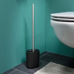 Bremermann WC-Bürste WC-Garnitur Barbena, Schwarz, Bürstenhalter Aus Edelstahl, Zur Wandmontage