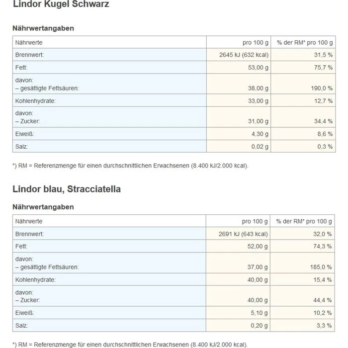 * Lindor blau, Stracciatella
