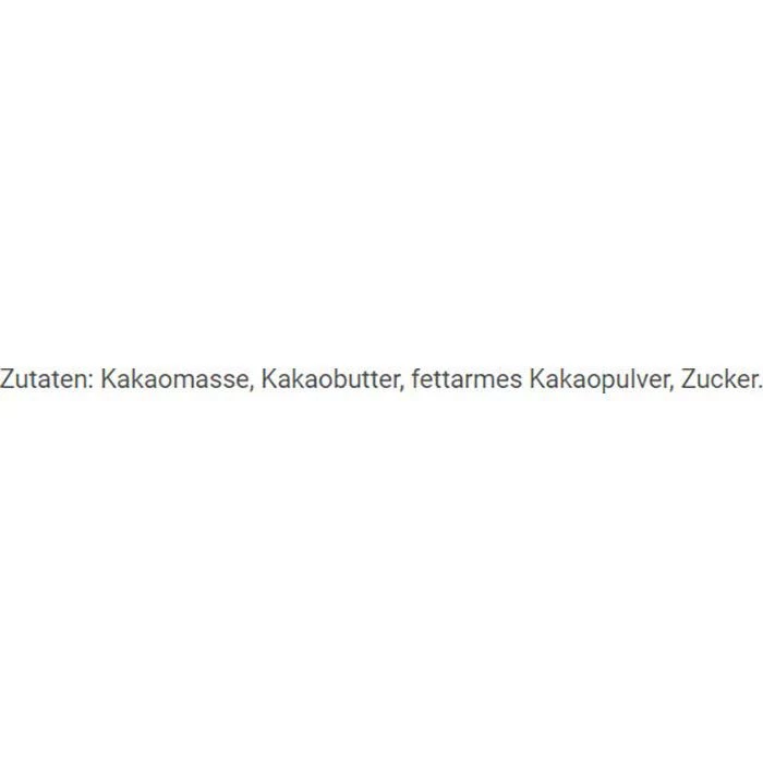 Zutaten: Kakaomasse, Kakaobutter, fettarmes Kakaopulver, Zucker.