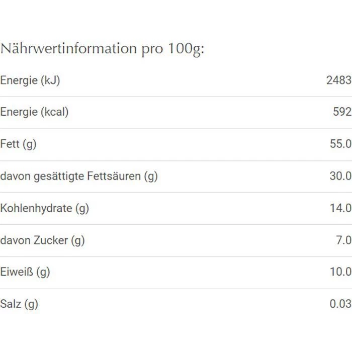 Kann HASELNÜSSE, MANDELN, andere SCHALENFRÜCHTE, MILCH und SOJA enthalten.