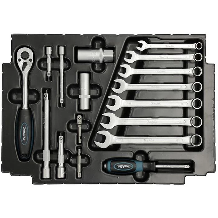 sonstiges: umfangreiches Werkzeug-Set, Werkzeuge aus robustem Chrom-Vanadium-Stahl, die Makita Systemkoffer lassen sich praktisch stapeln und einfach durch ein Klicksystem miteinander verbinden