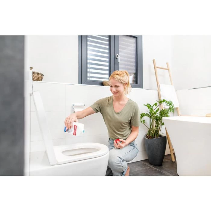 Hinweis: WC-Reiniger vorsichtig verwenden. Vor Gebrauch stets Etikett und Produktinformationen lesen.