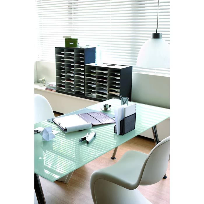 sonstiges: mit Griffmulde, flexiblem Etikettenhalter, Einsteckschilder und geriffelter Kunststoff-Auflage, jedes Fach bietet Platz für bis zu 500 Blatt Papier, die Lieferung erfolgt montiert, ist sofort einsatzbereit und stapelbar durch praktische Montageclips