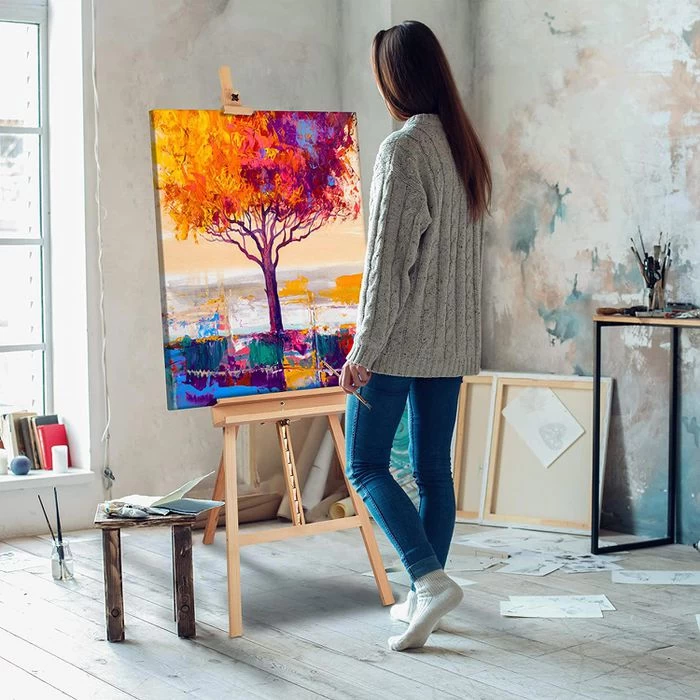 • Dreibeinige Akademiestaffelei mit Ablagefach aus Buchenholz