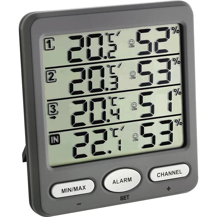• Einstellbare Grenzwertalarme für Temperatur und Luftfeuchtigkeit