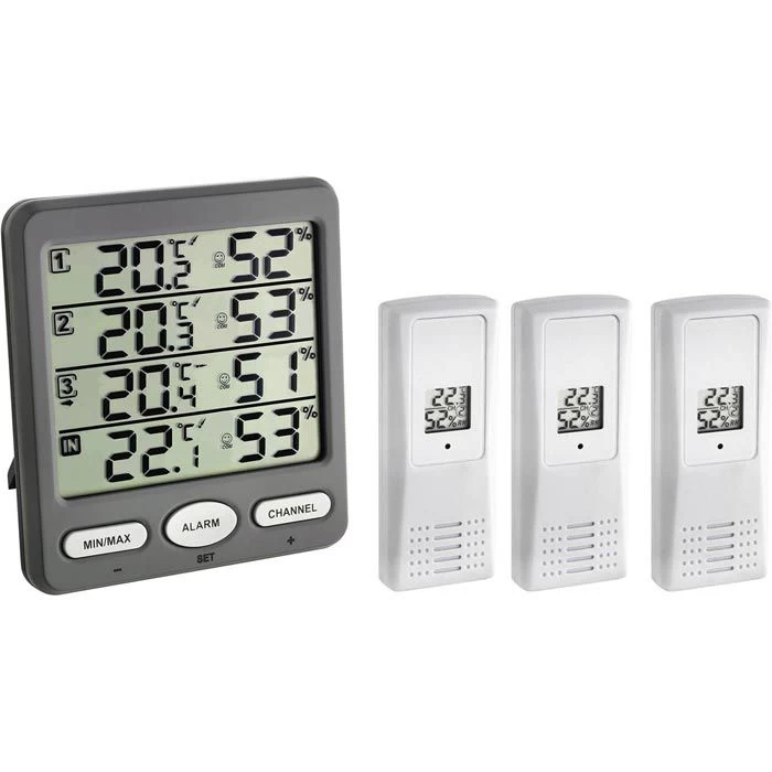 sonstiges: erweiterbar auf insgesamt 8 Sensoren, Min.-/ Max.-Funktion, Darstellung in °C oder °F, Kalibrierfunktion, zum Hängen oder Stellen