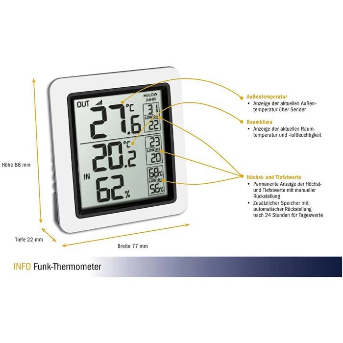 Funktionen: MIN-/MAX-Anzeige, mit Außensensor