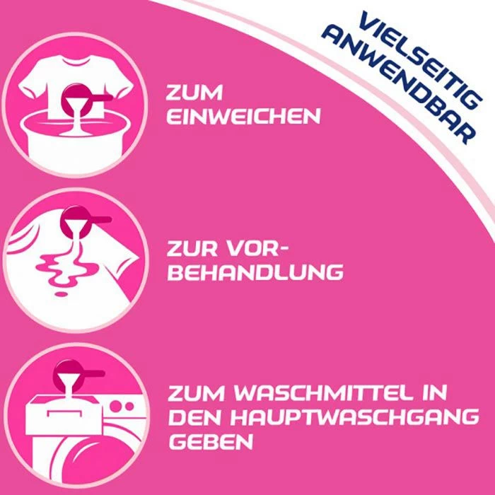 • Zum Vorbehandeln, Einweichen und als Zugabe direkt in die Waschmaschine