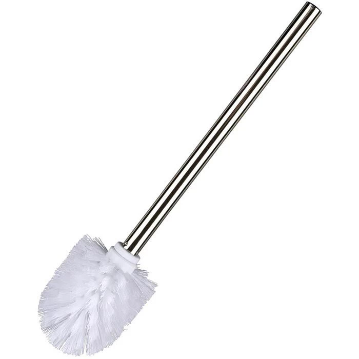 • Glänzender, rostfreier Edelstahlstiel mit wechselbarem, weißem Bürstenkopf